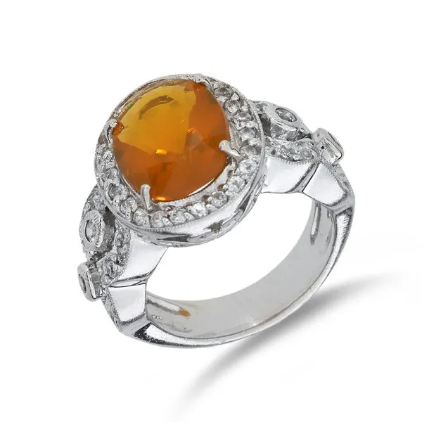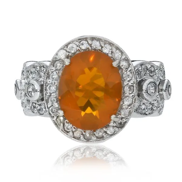Sterling Silver 3.26ct Fire Opal and Zircon Halo Cocktail Ring Image 5 Purple Creek Holly Springs, NC