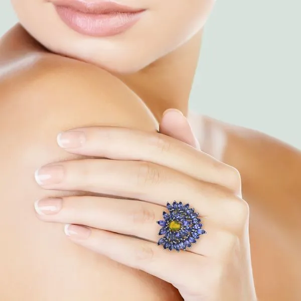 Sterling Silver 4.09ctw Tanzanite & Jelly Opal Statement Ring