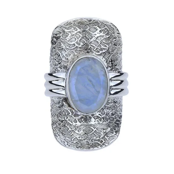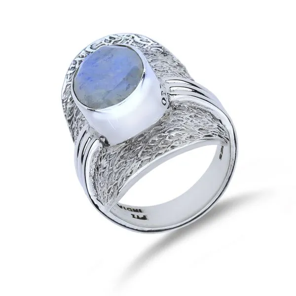 Sterling Silver 5.07ct Labradorite Moonstone Textured Ring