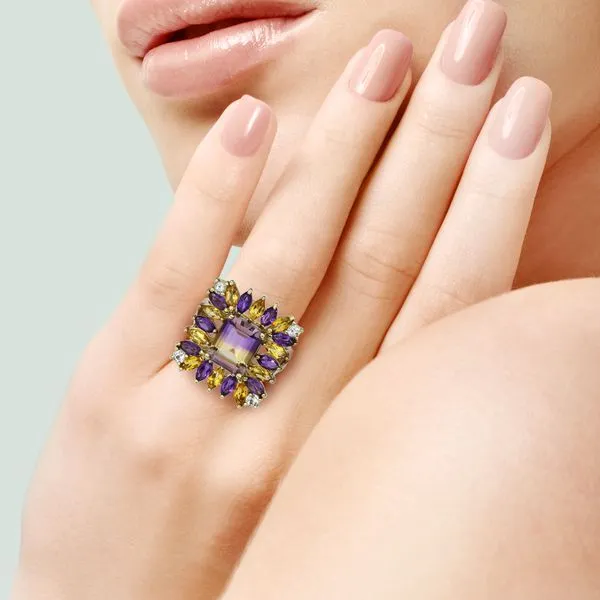 Sterling Silver 6.53ctw Ametrine, Amethyst, Citrine & Topaz Cluster Ring Purple Creek Holly Springs, NC