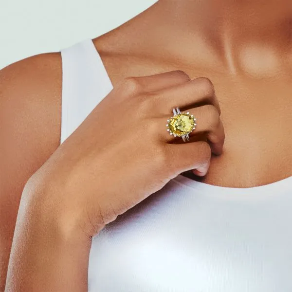 Sterling Silver 8.75ct Oval Checkerboard Citrine Ring