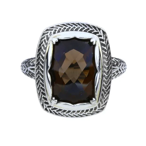 Sterling Silver 9.50 Checkboard Cushion Smoky Quartz Ring