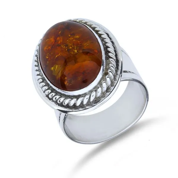 Sterling Silver Large Oval Amber Rope Halo Ring