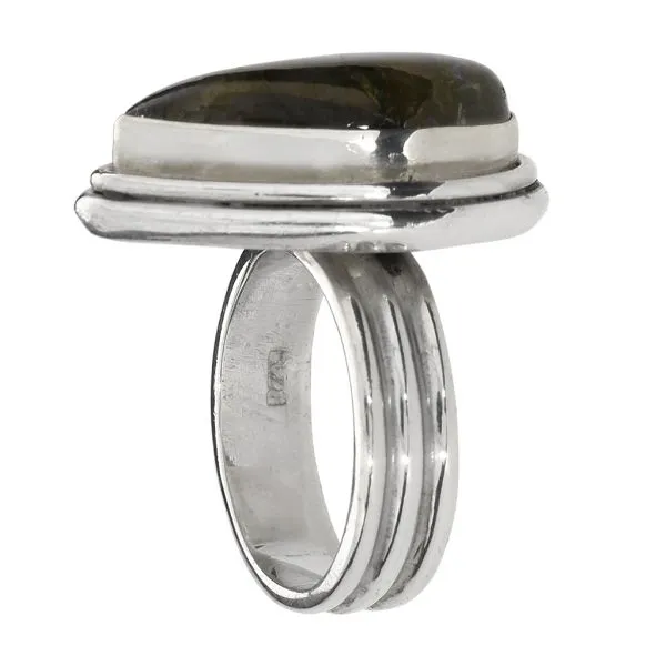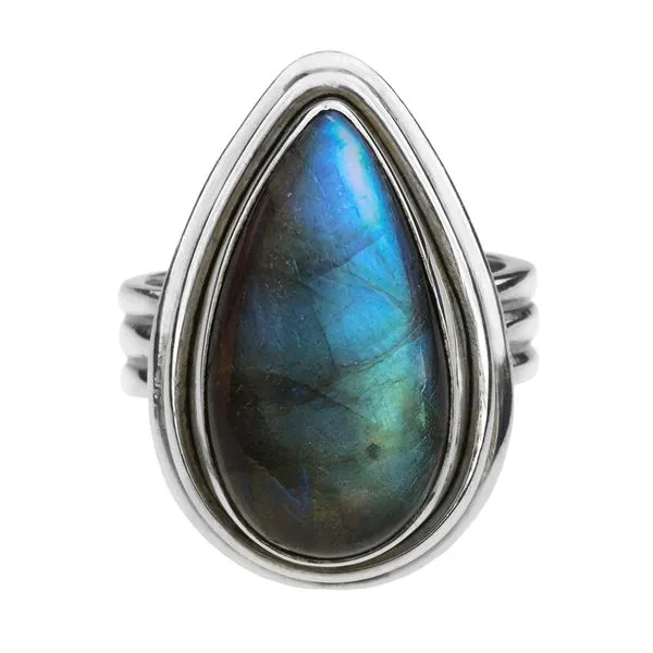 Sterling Silver Large Pear Labradorite Cabochon Ring