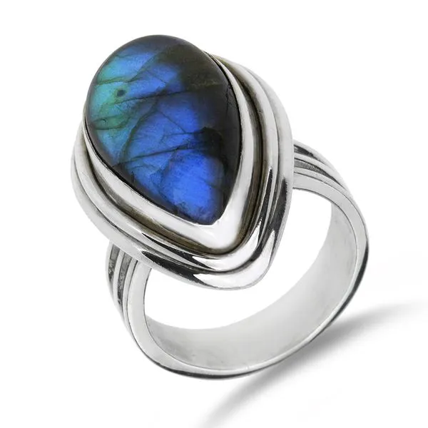 Sterling Silver Large Pear Labradorite Cabochon Ring Purple Creek Holly Springs, NC