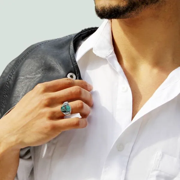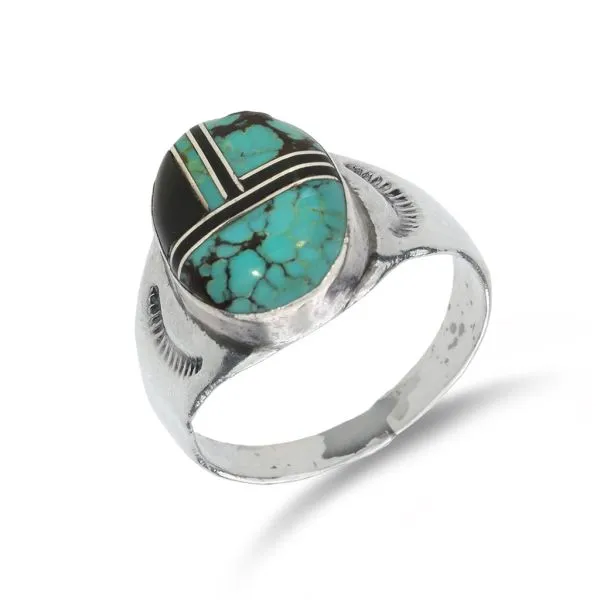Sterling Silver Native American Vintage Turquoise and Onyx Inlay Ring