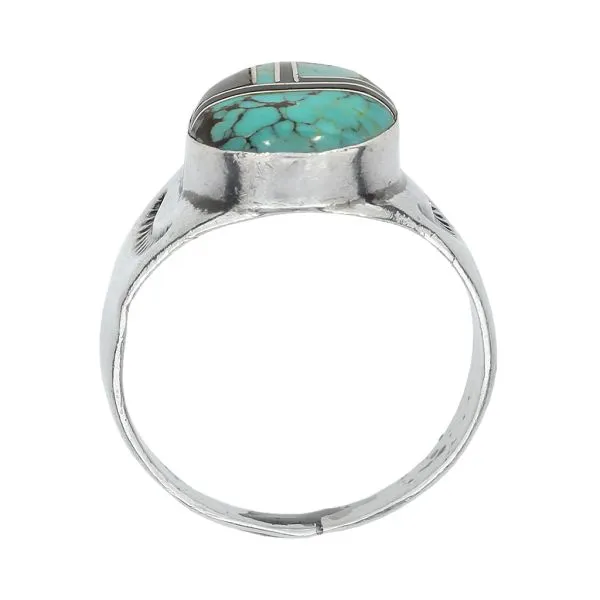 Sterling Silver Native American Vintage Turquoise and Onyx Inlay Ring Image 5 Purple Creek Holly Springs, NC
