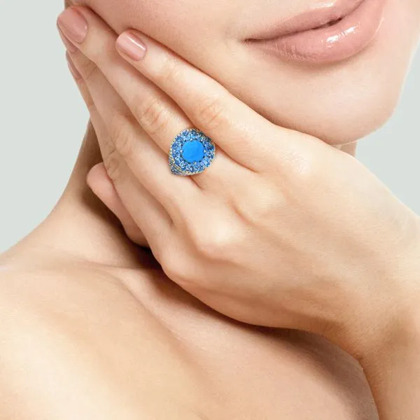 Sterling Silver Turquoise and 4.70ctw Topaz Halo Ring Purple Creek Holly Springs, NC