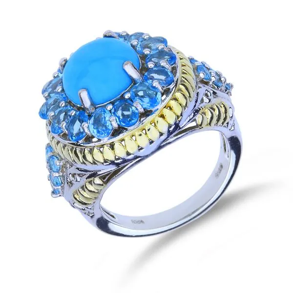 Sterling Silver Turquoise and 4.70ctw Topaz Halo Ring Image 2 Purple Creek Holly Springs, NC