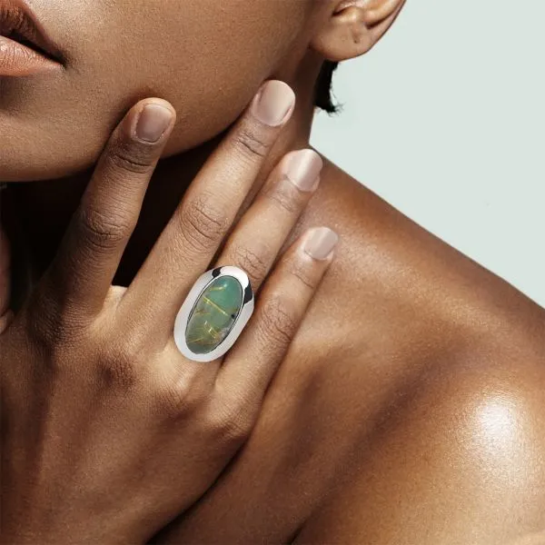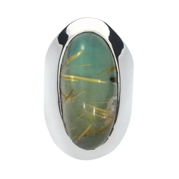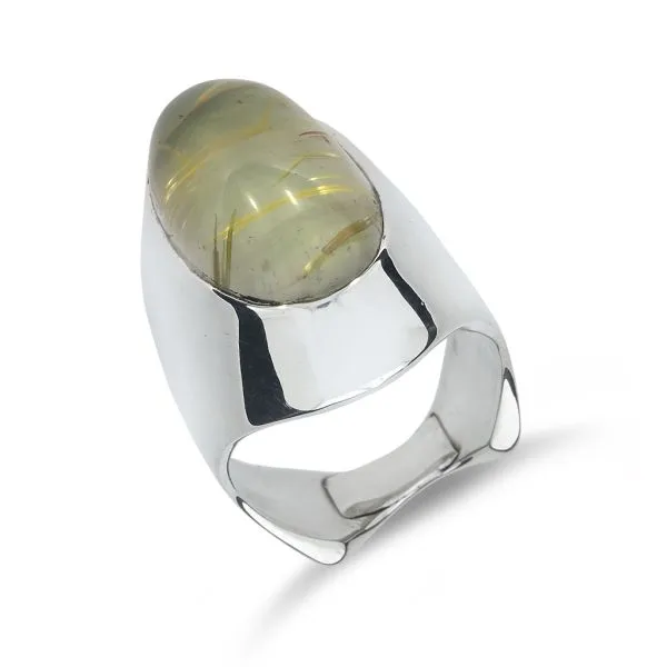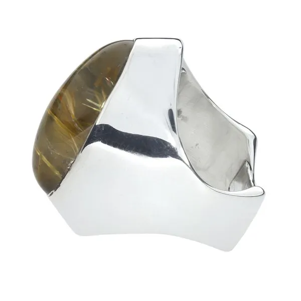 Sterling Silver Vintage Rutilated Quartz Cabochon Statement Ring