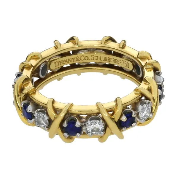 Tiffany & Co. Jean Schlumberger Signature 16 Stone 18K Yellow Gold and Platinum Diamond and Blue Sapphire X Ring Image 5 Purple Creek Holly Springs, NC