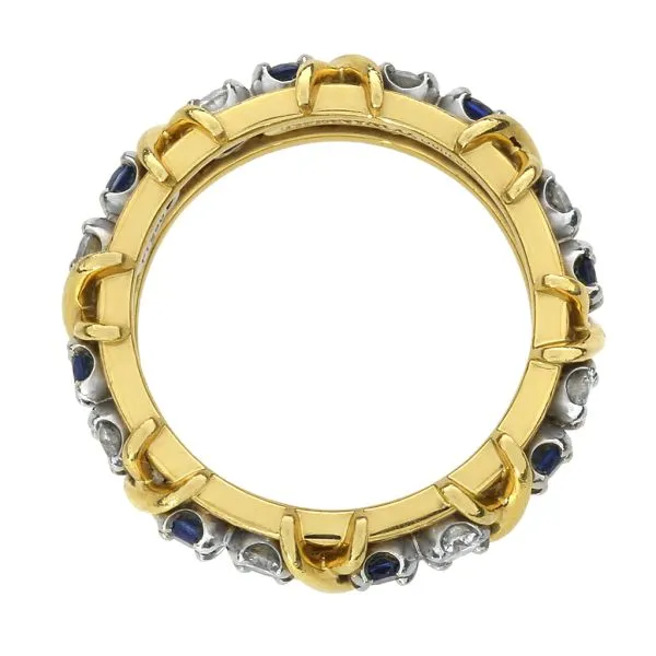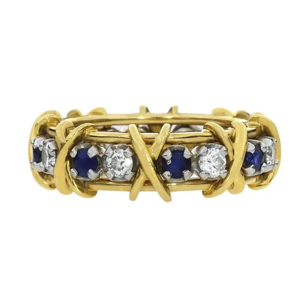 Tiffany & Co. Jean Schlumberger Signature 16 Stone 18K Yellow Gold and Platinum Diamond and Blue Sapphire X Ring Image 3 Purple Creek Holly Springs, NC
