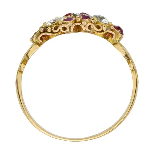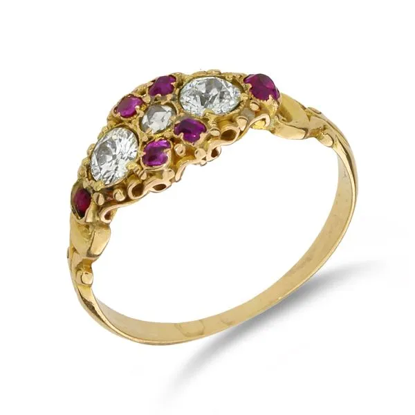 Victorian 18K Yellow Gold Old European Diamond and Ruby Ring