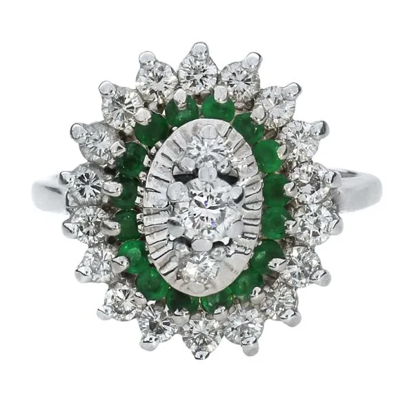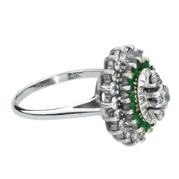 Vintage 14K White Gold .79ctw Diamond and .336ctw Emerald Cocktail Ring