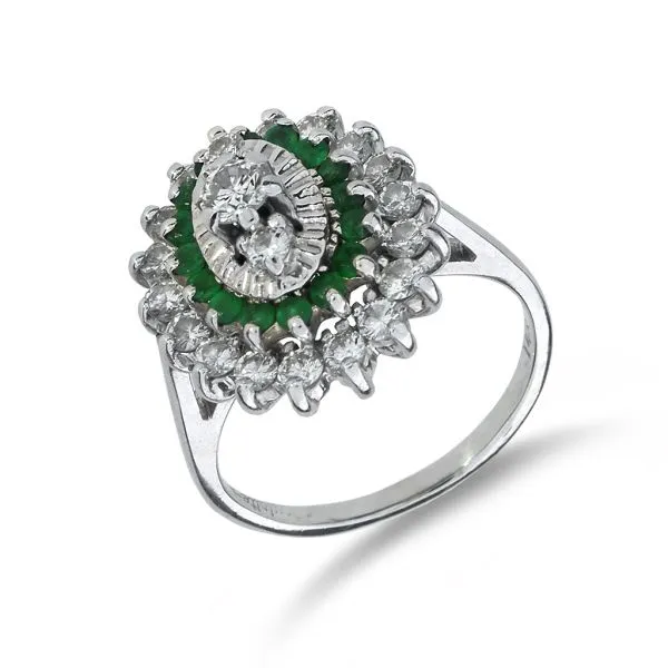 Vintage 14K White Gold .79ctw Diamond and .336ctw Emerald Cocktail Ring Purple Creek Holly Springs, NC