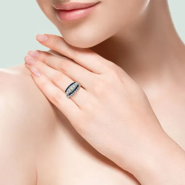 Vintage 14K White Gold Diamond and Blue Sapphire Dress Ring Purple Creek Holly Springs, NC