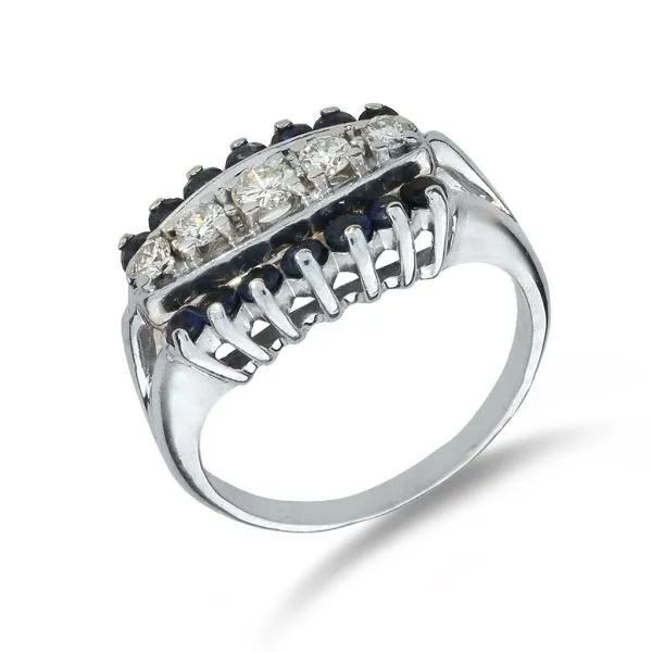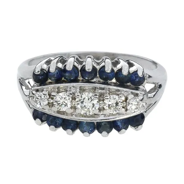 Vintage 14K White Gold Diamond and Blue Sapphire Dress Ring Image 2 Purple Creek Holly Springs, NC