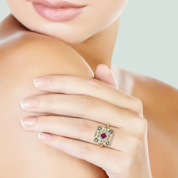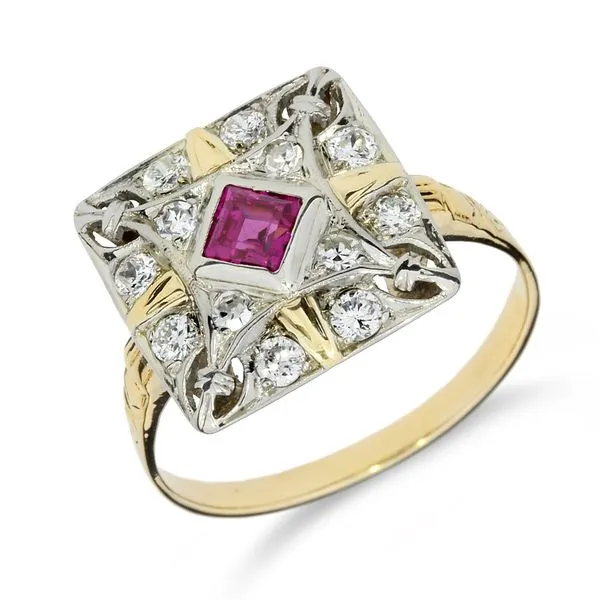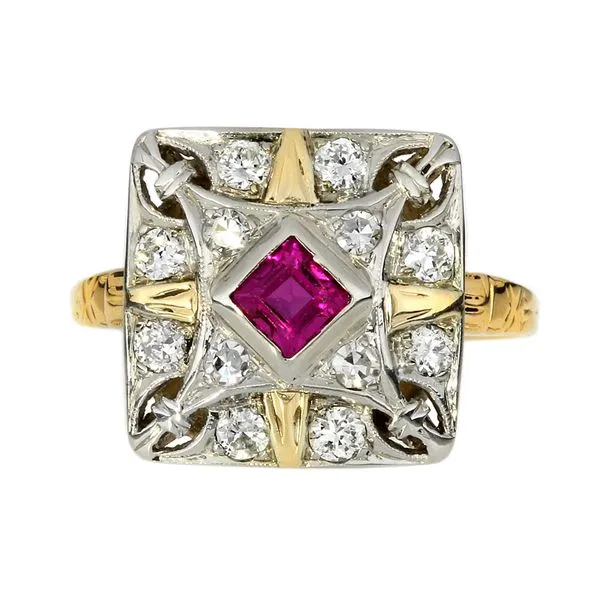 Vintage 14K Yellow and White Gold Ruby & Natural Diamond Cluster Ring Image 2 Purple Creek Holly Springs, NC