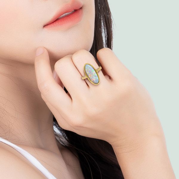 Vintage 14K Yellow Gold 2.37ct Australian Opal Dress Ring
