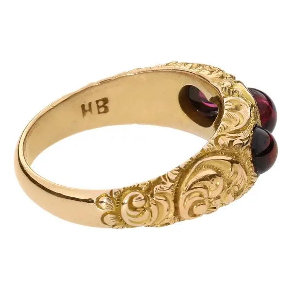 Vintage 14K Yellow Gold Hand Engraved Rhodolite Garnet 3 Stone Ring Image 3 Purple Creek Holly Springs, NC