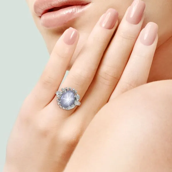 Vintage 18K White Gold 6.40 Natural Star Sapphire with .275ctw Diamond Dress Ring Image 2 Purple Creek Holly Springs, NC