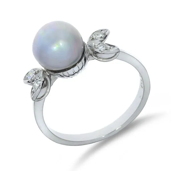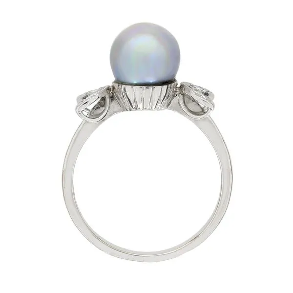 Vintage 18K White Gold 8.5mm Silver Pearl & Natural Diamond Ring Image 2 Purple Creek Holly Springs, NC