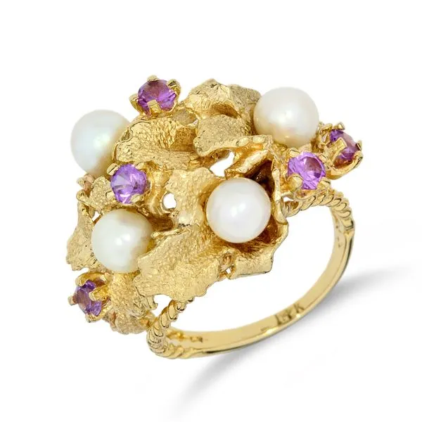 Vintage 18K Yellow Gold Pearl & Amethyst Cluster Ring Image 2 Purple Creek Holly Springs, NC