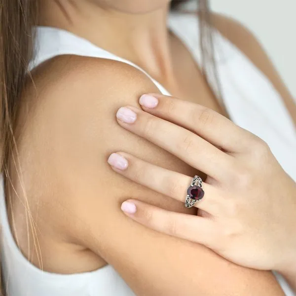 Vintage Avon Sterling Silver 4.20ct Oval Garnet Open Scrollwork Ring Purple Creek Holly Springs, NC