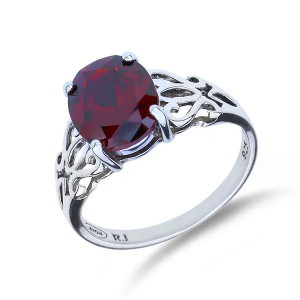 Vintage Avon Sterling Silver 4.20ct Oval Garnet Open Scrollwork Ring Image 3 Purple Creek Holly Springs, NC