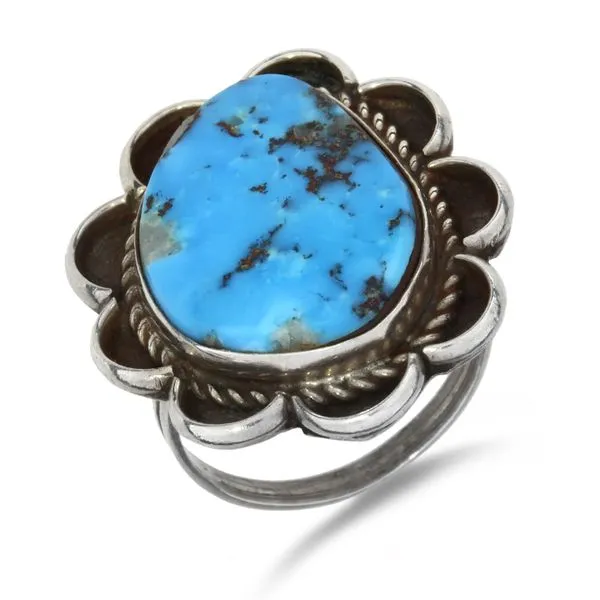 Vintage Native American Sterling Silver Turquoise Rope Halo Floral Ring Image 2 Purple Creek Holly Springs, NC